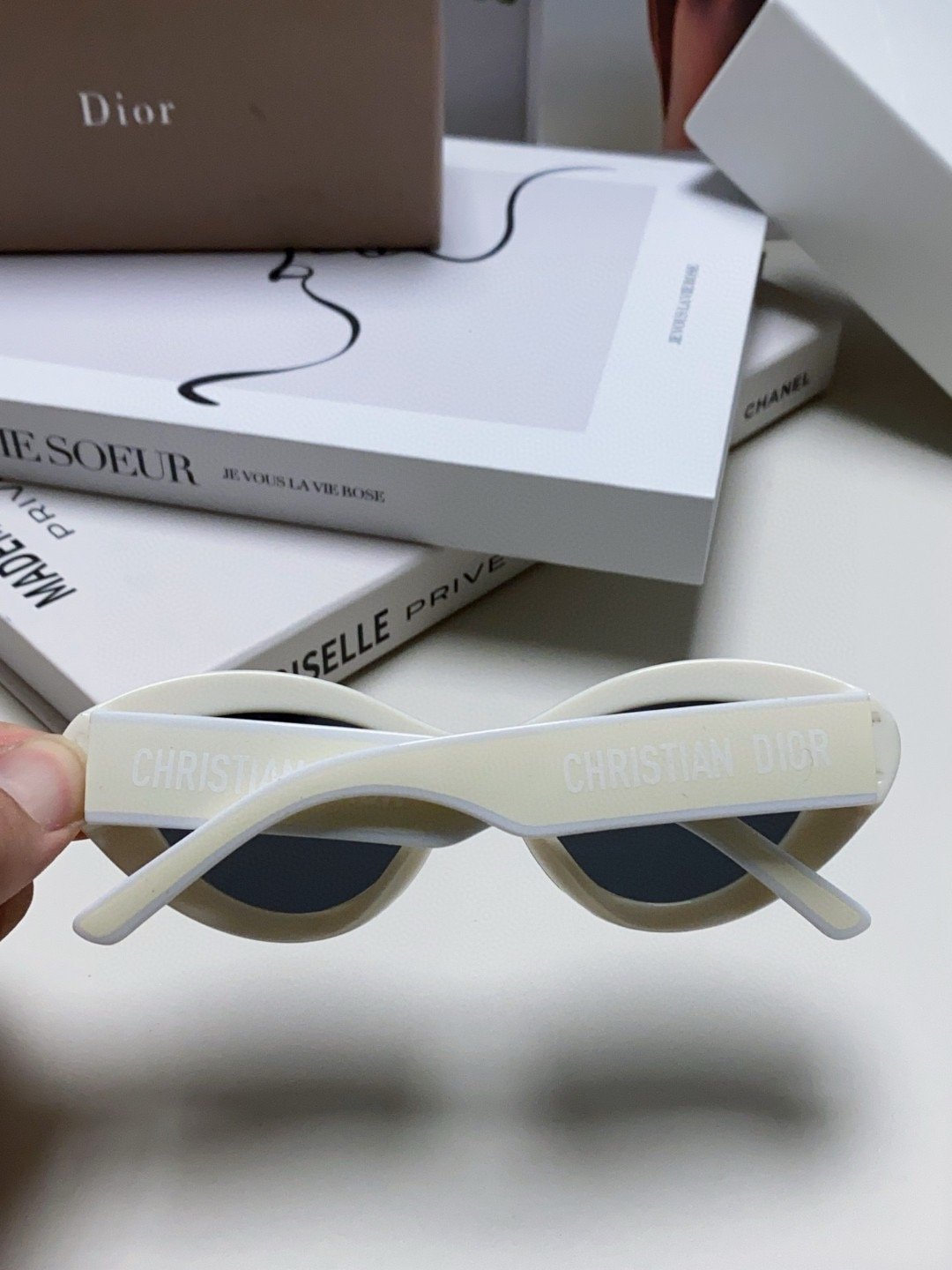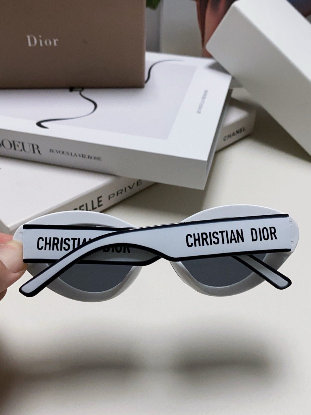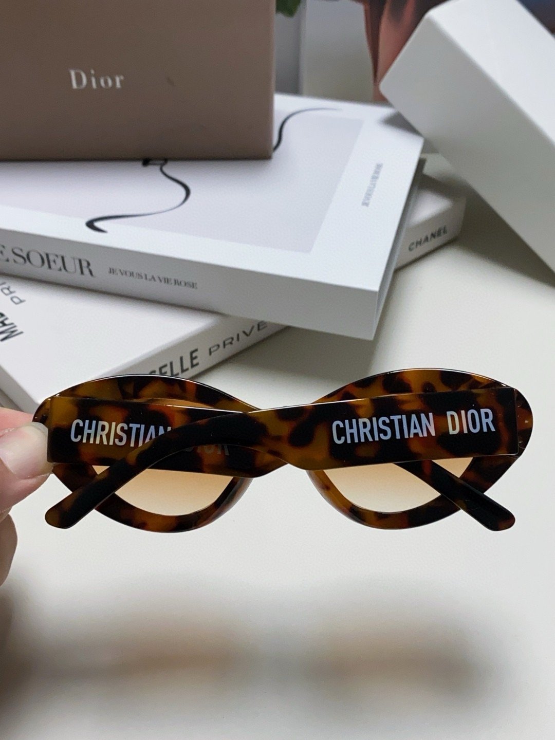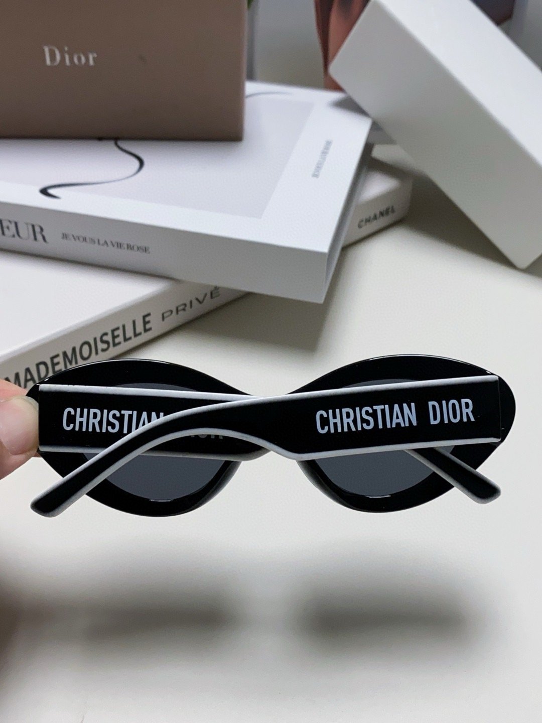 2.“CHRISTIAN DIOR” logo on temples.