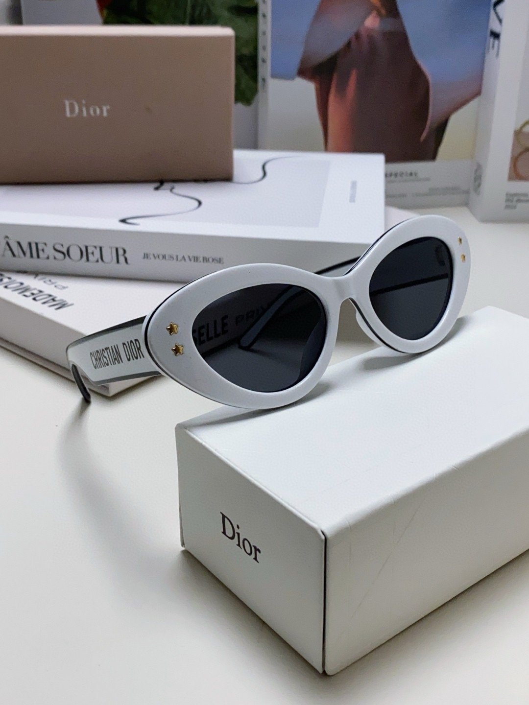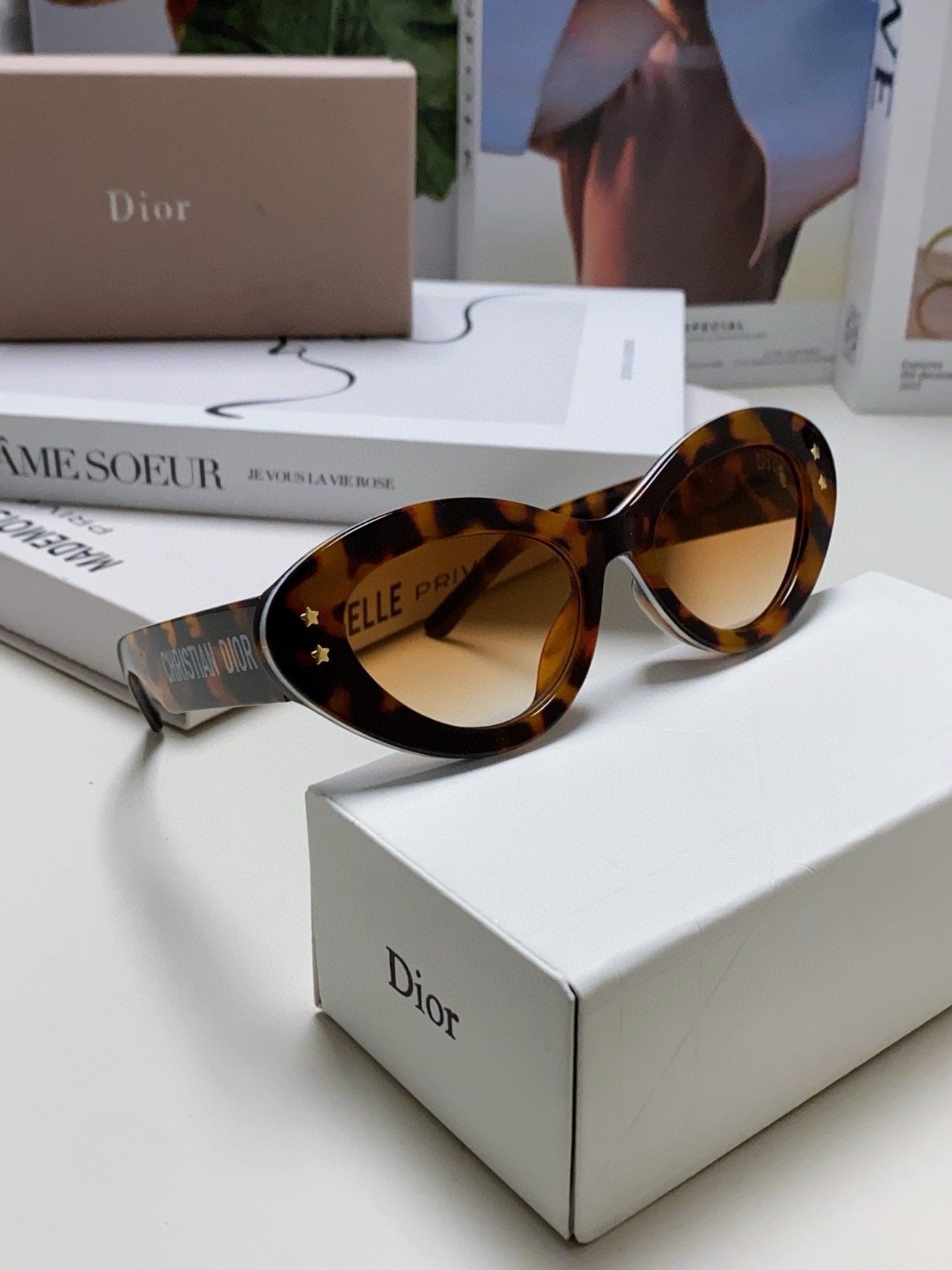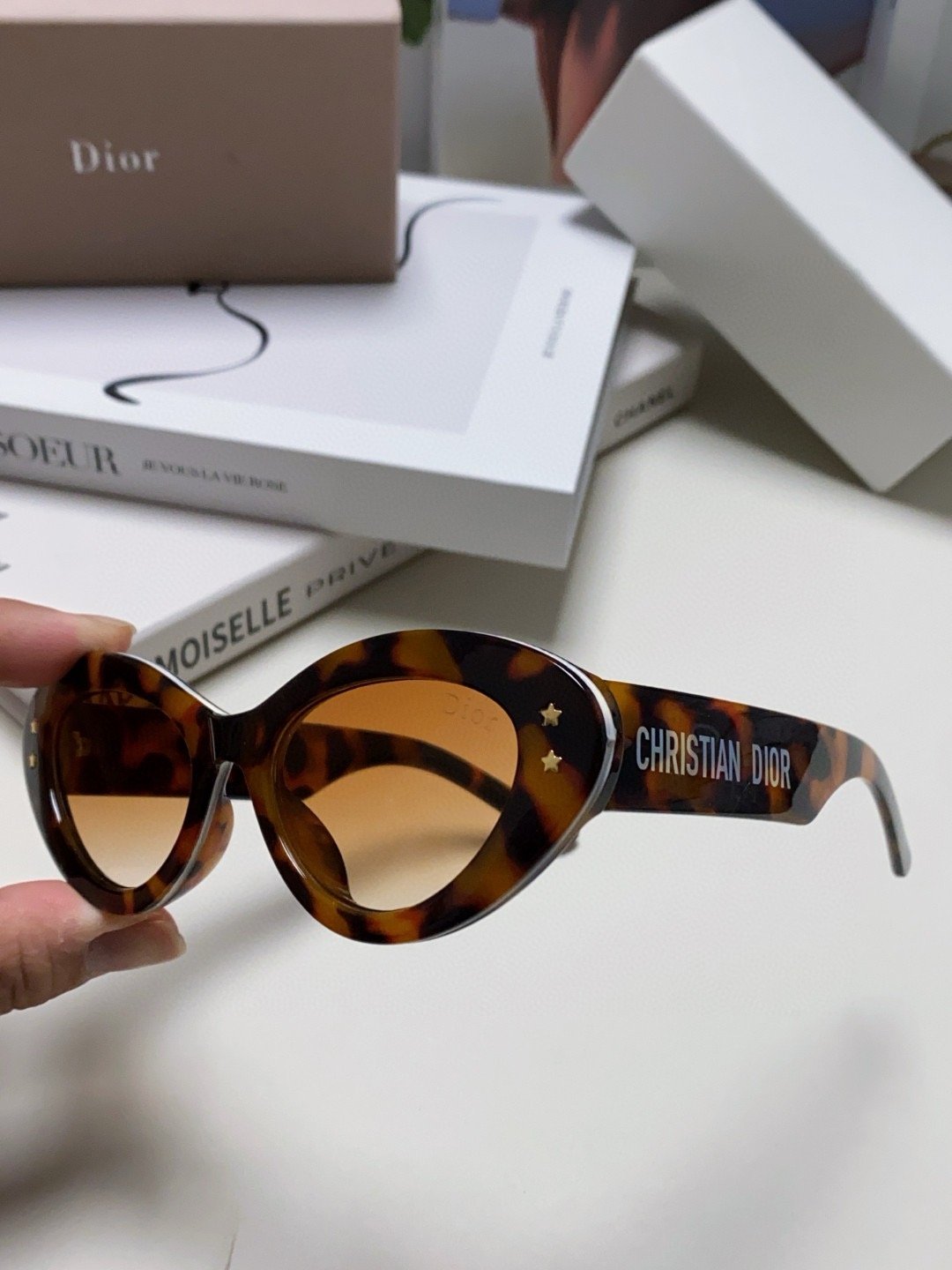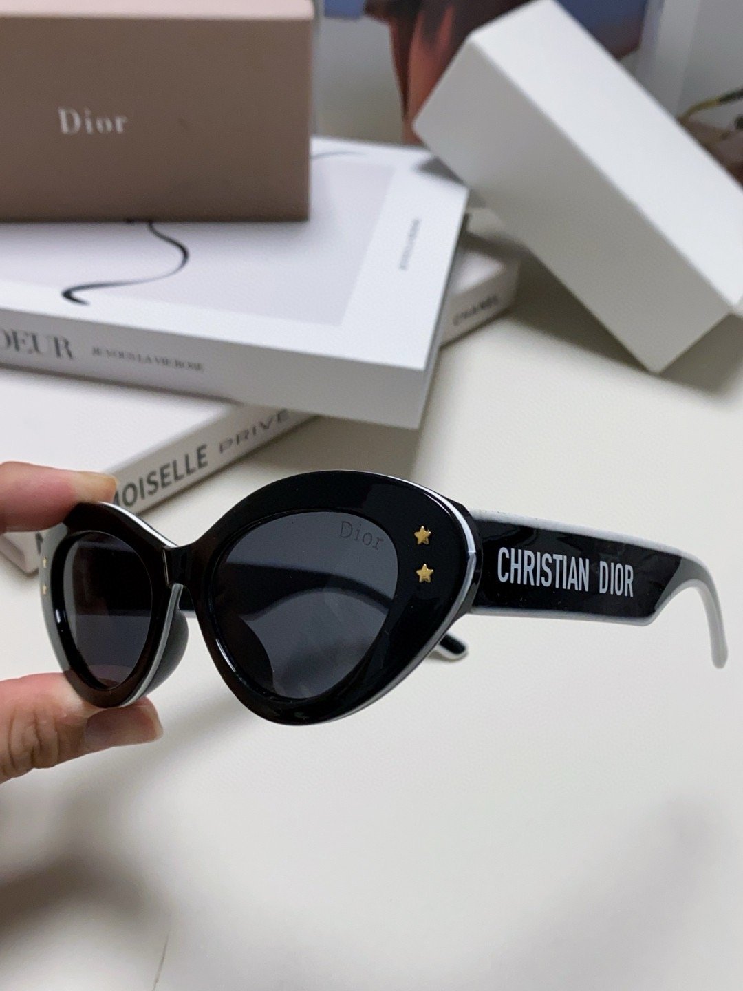 2.“CHRISTIAN DIOR” logo on temples.
