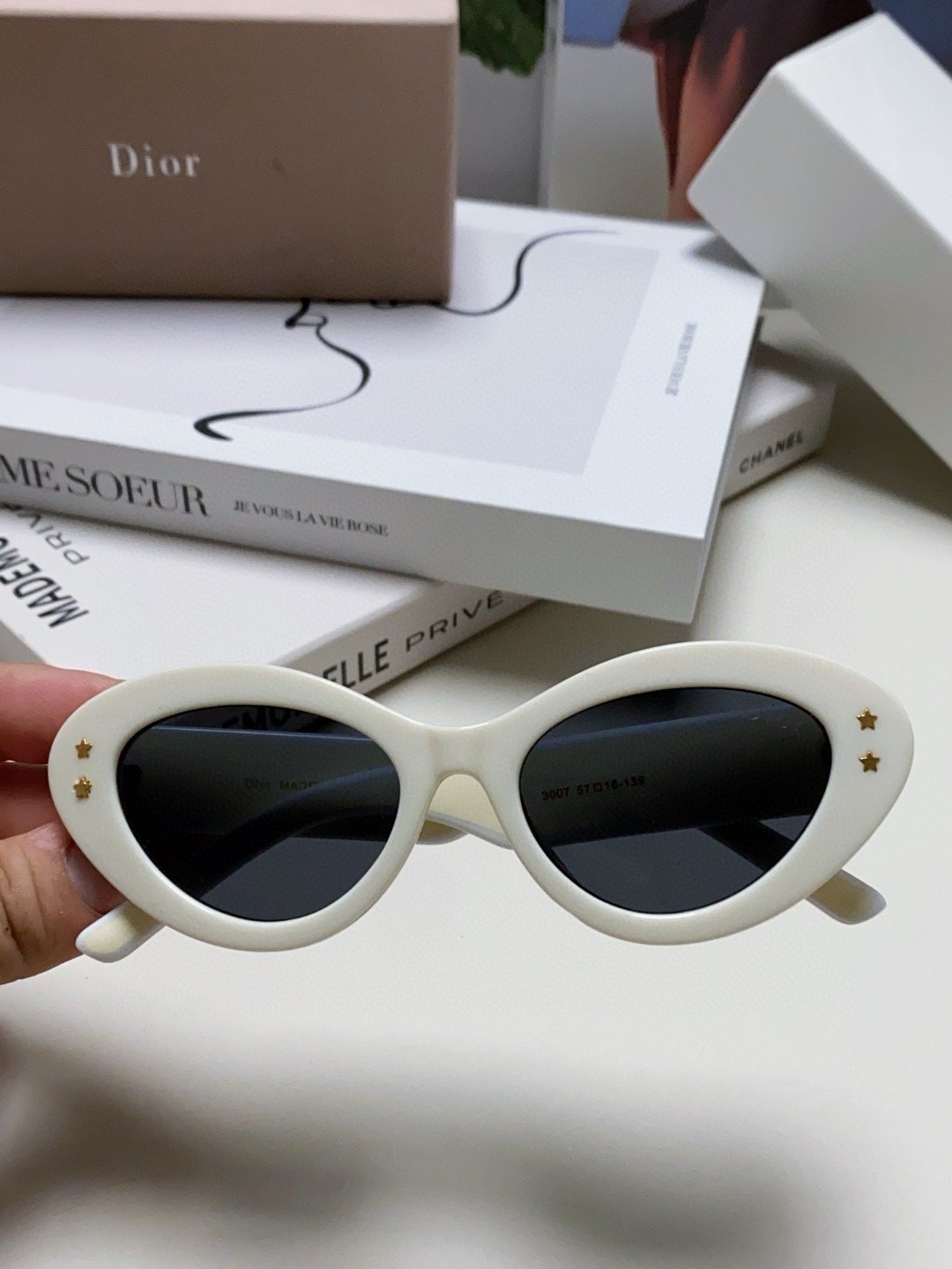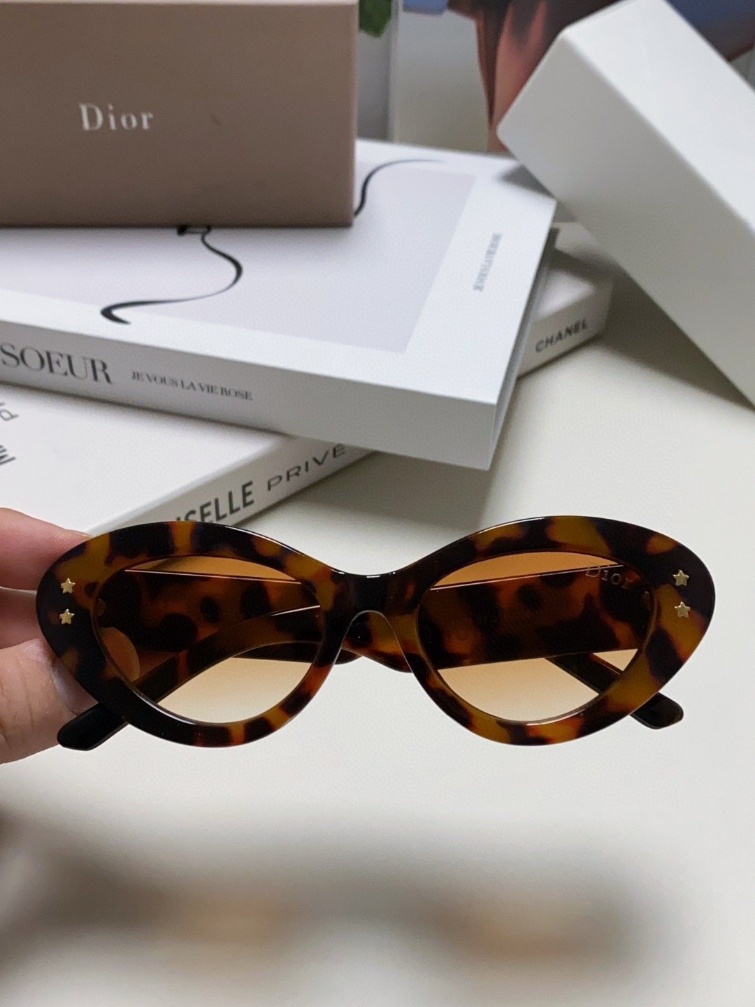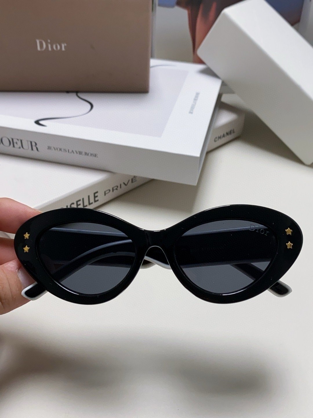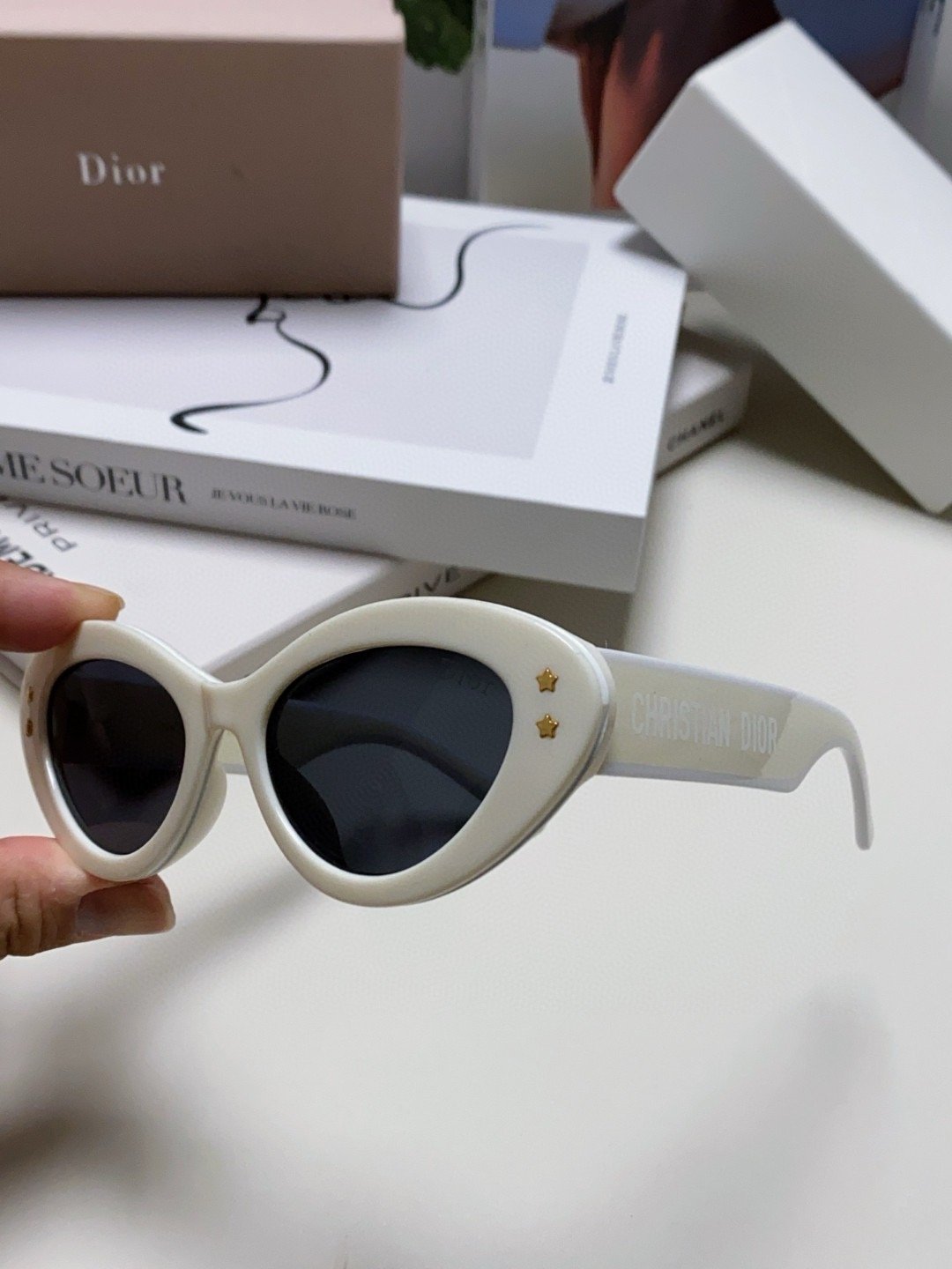 2.“CHRISTIAN DIOR” logo on temples.