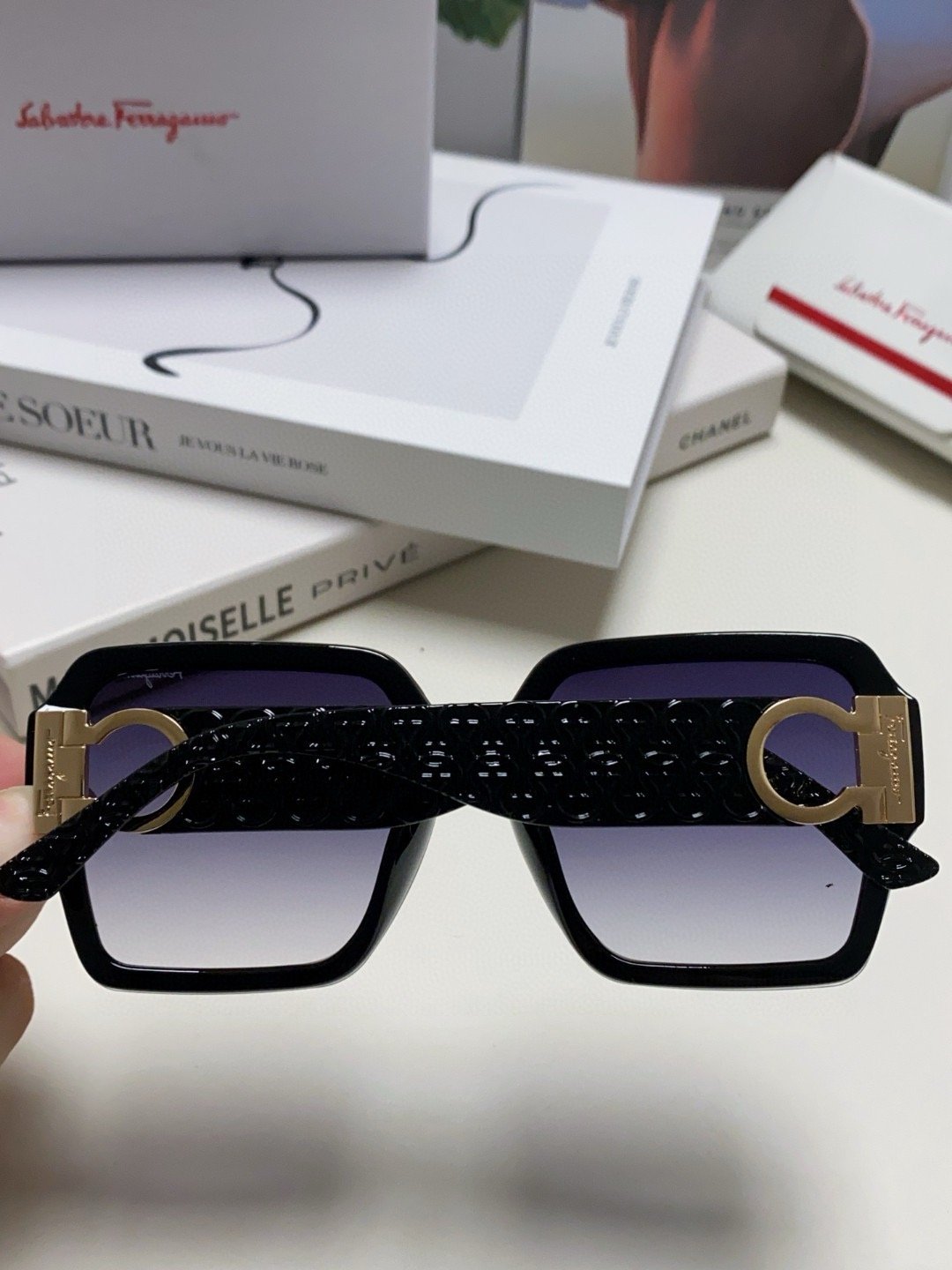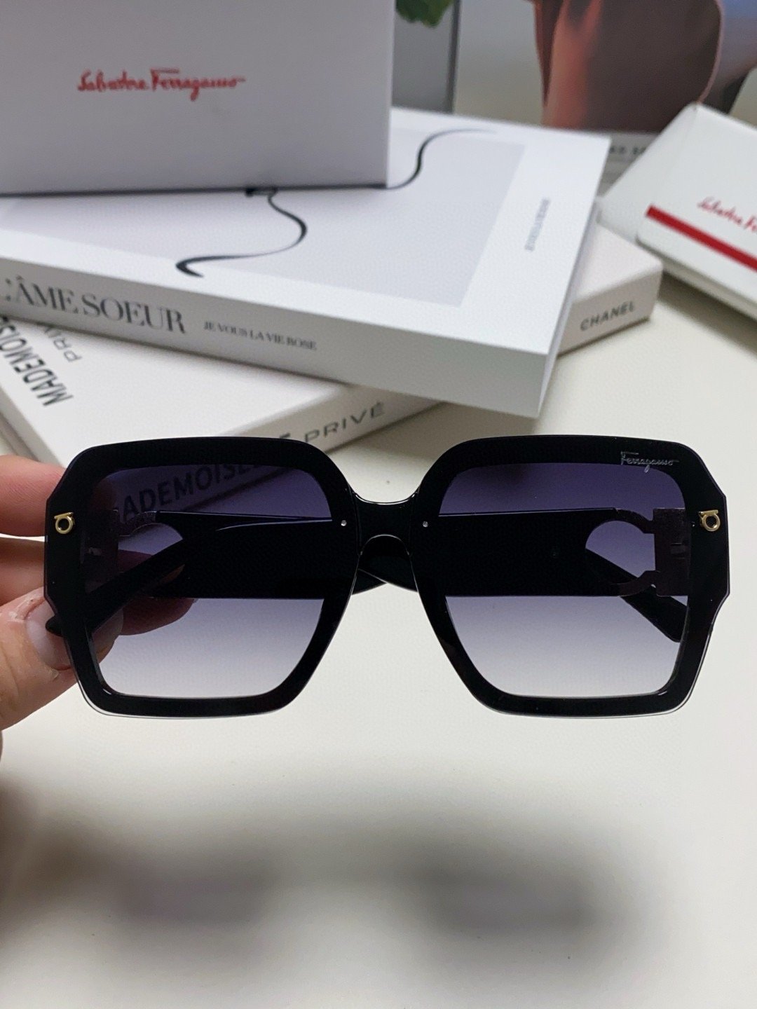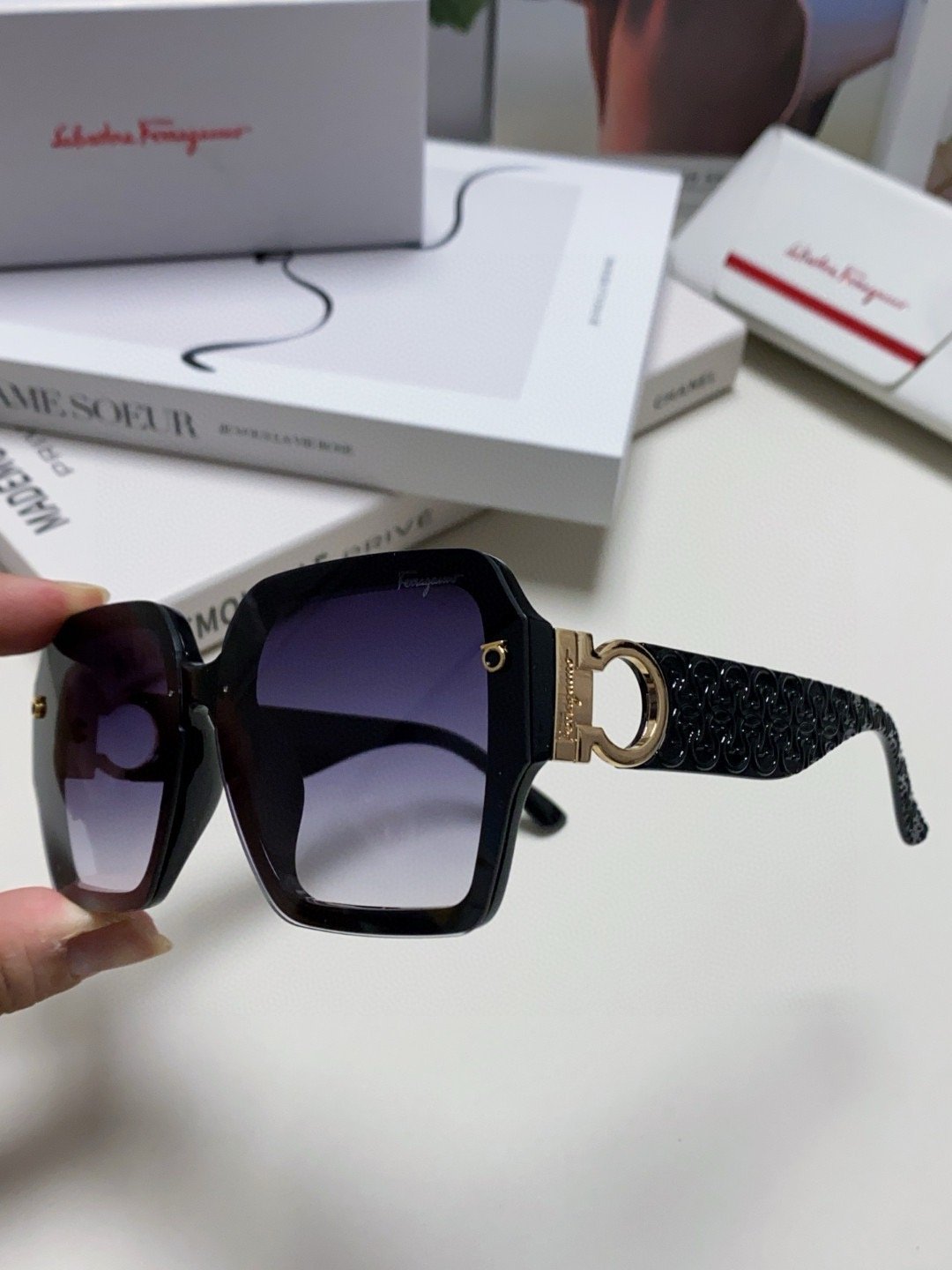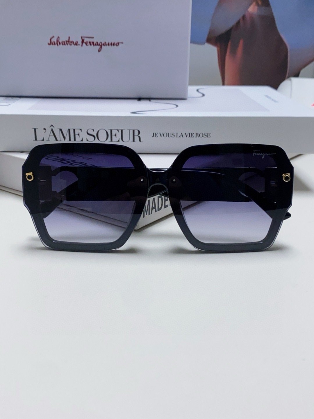 Be the first to review “Ferragamo Black Metal Logo Sunglasses”