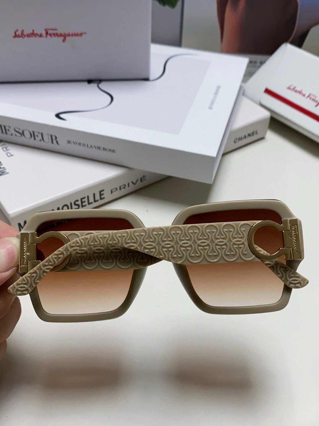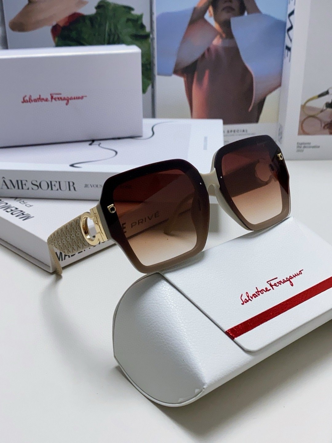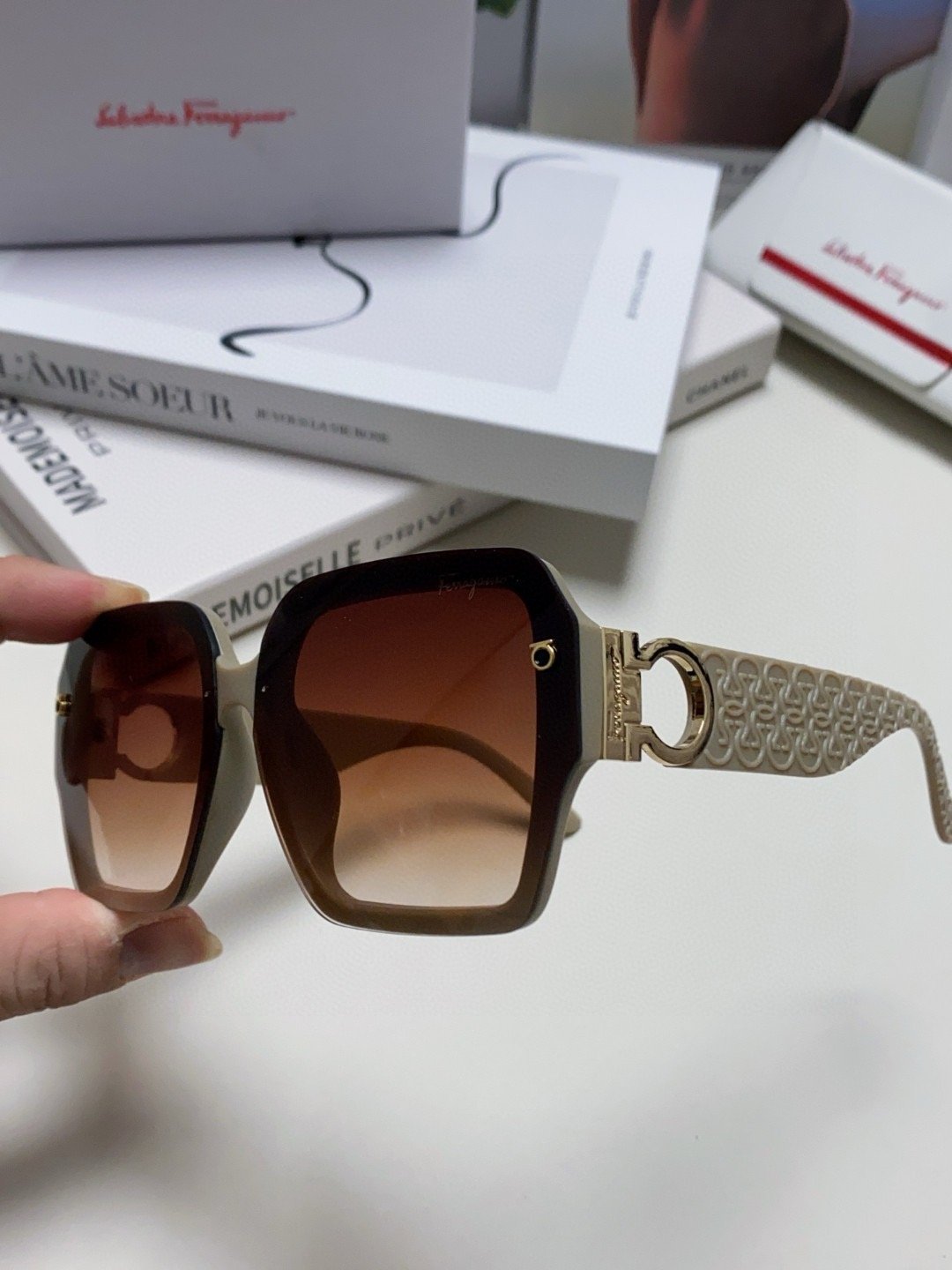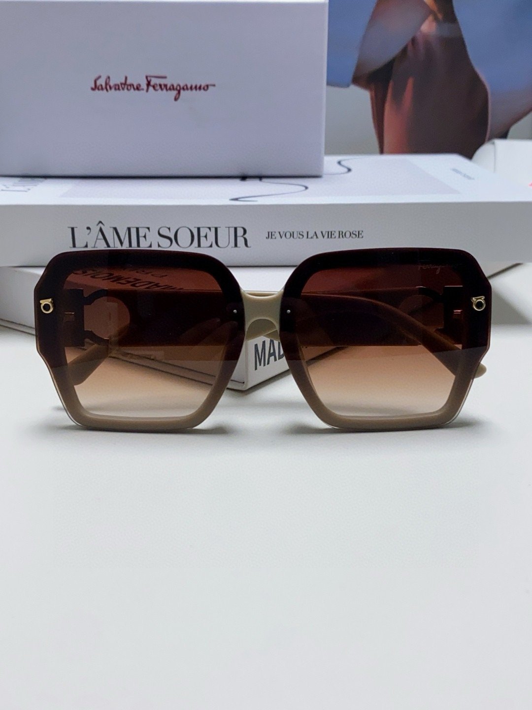Be the first to review “Ferragamo Brown Metal Logo Sunglasses”