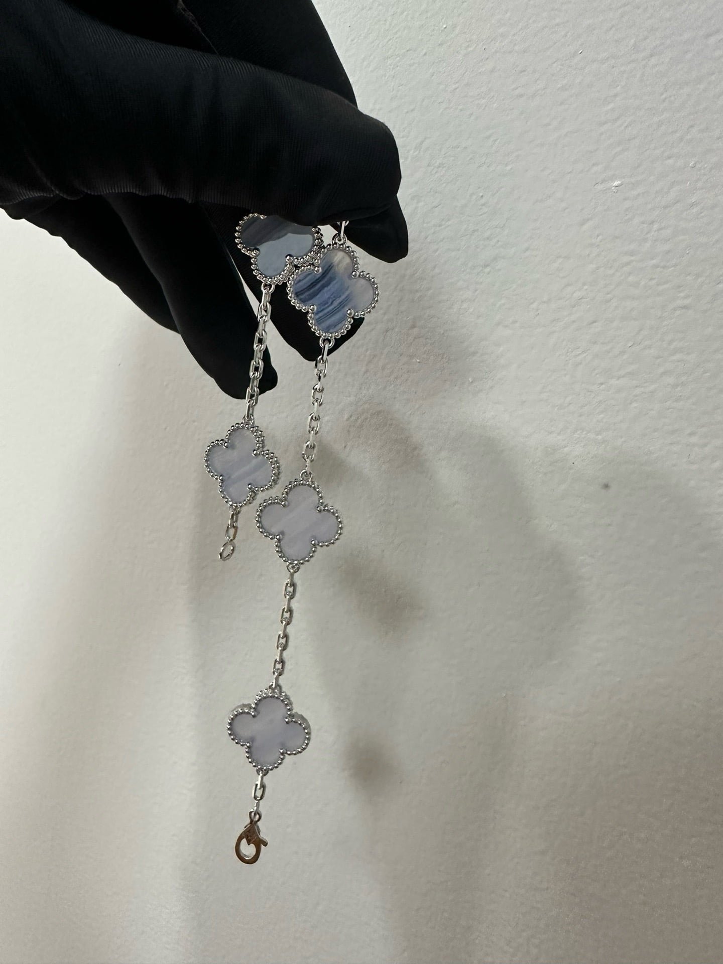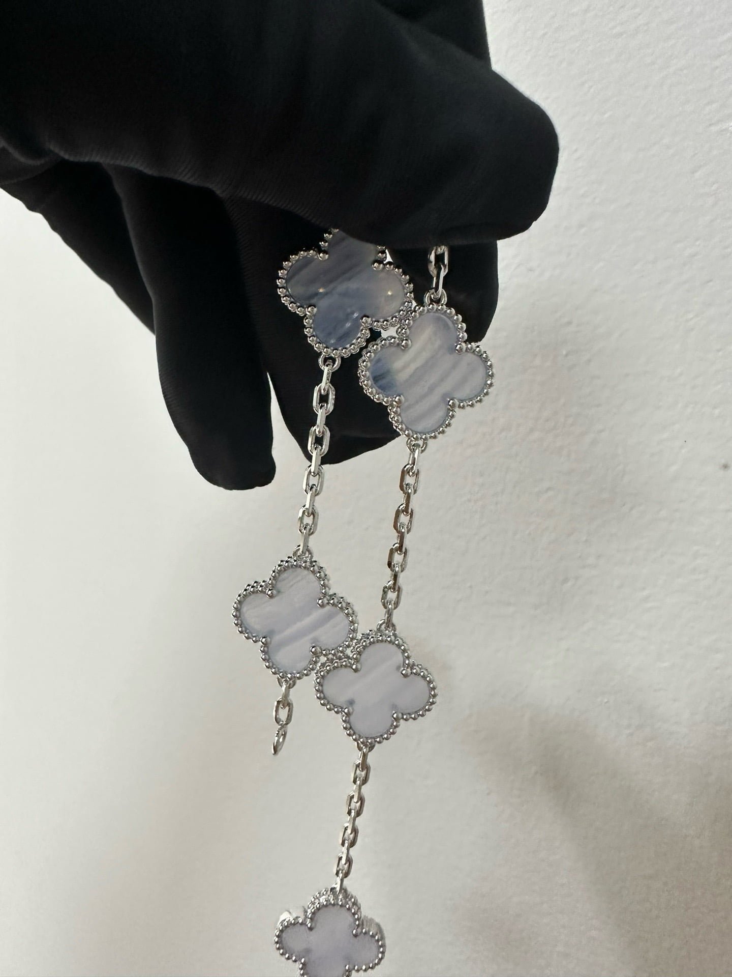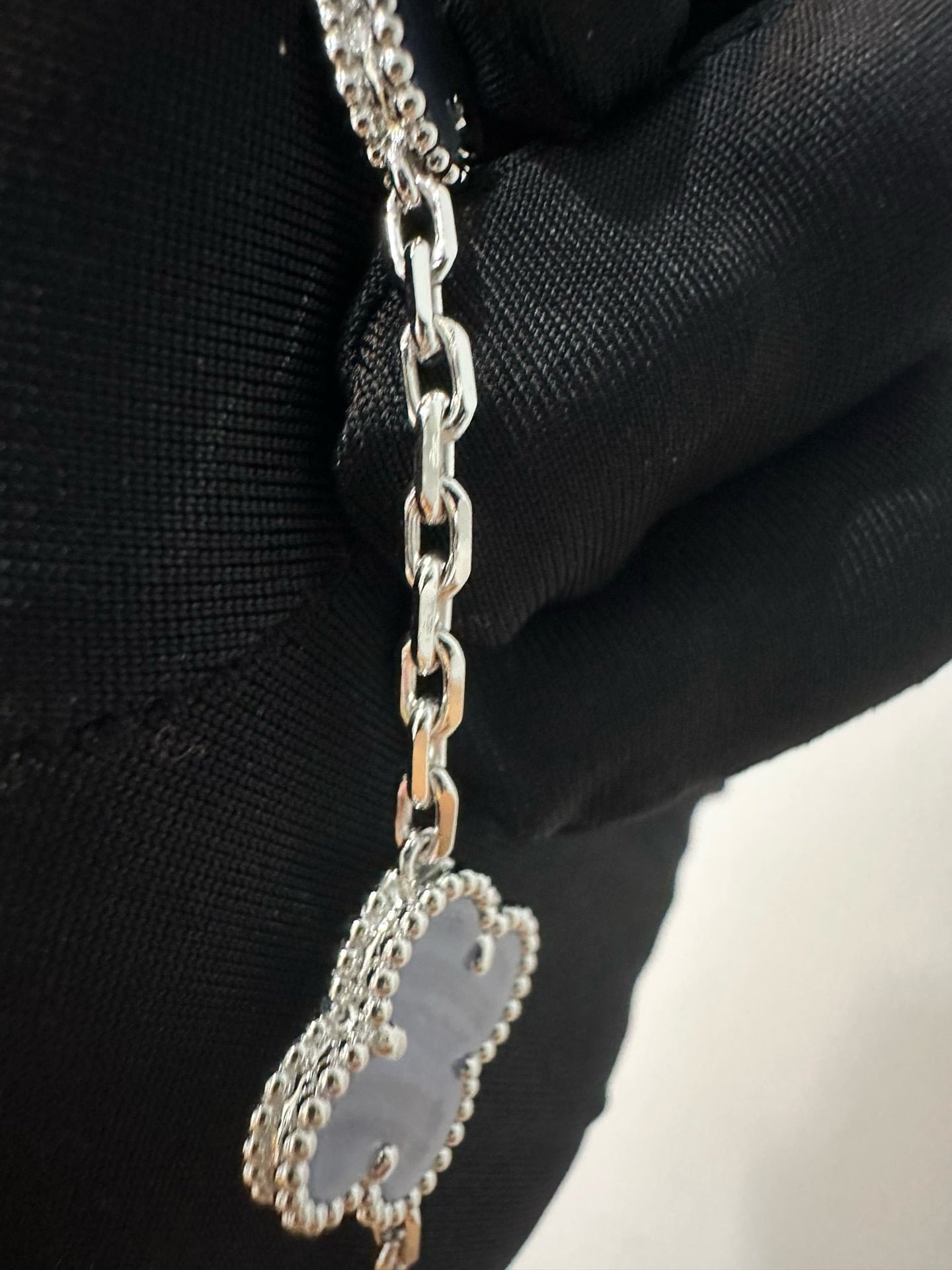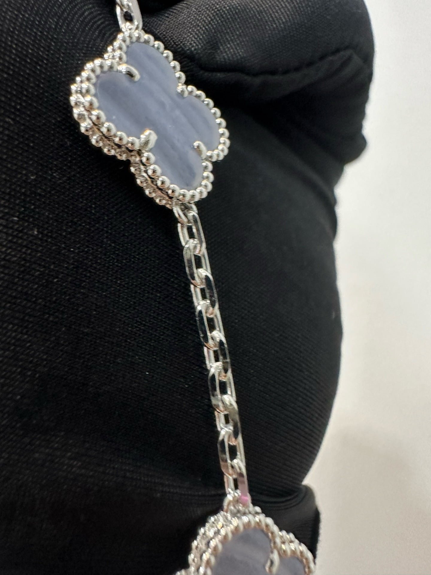 Vintage Alhambra bracelet, 5 motifs, rhodium plated 18K white gold, chalcedony.